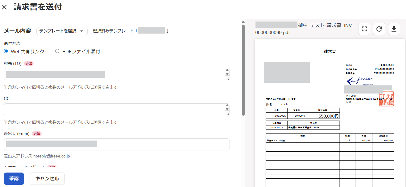 インポートにより作成した請求書をfreeeからメール送付する際は、別途料金が発生しますのでご注意ください。